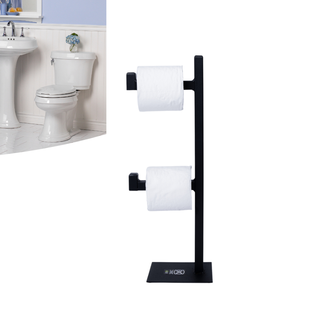 Porta Papel Higiênico Duplo De Chão Preto Com Reserva Ibox