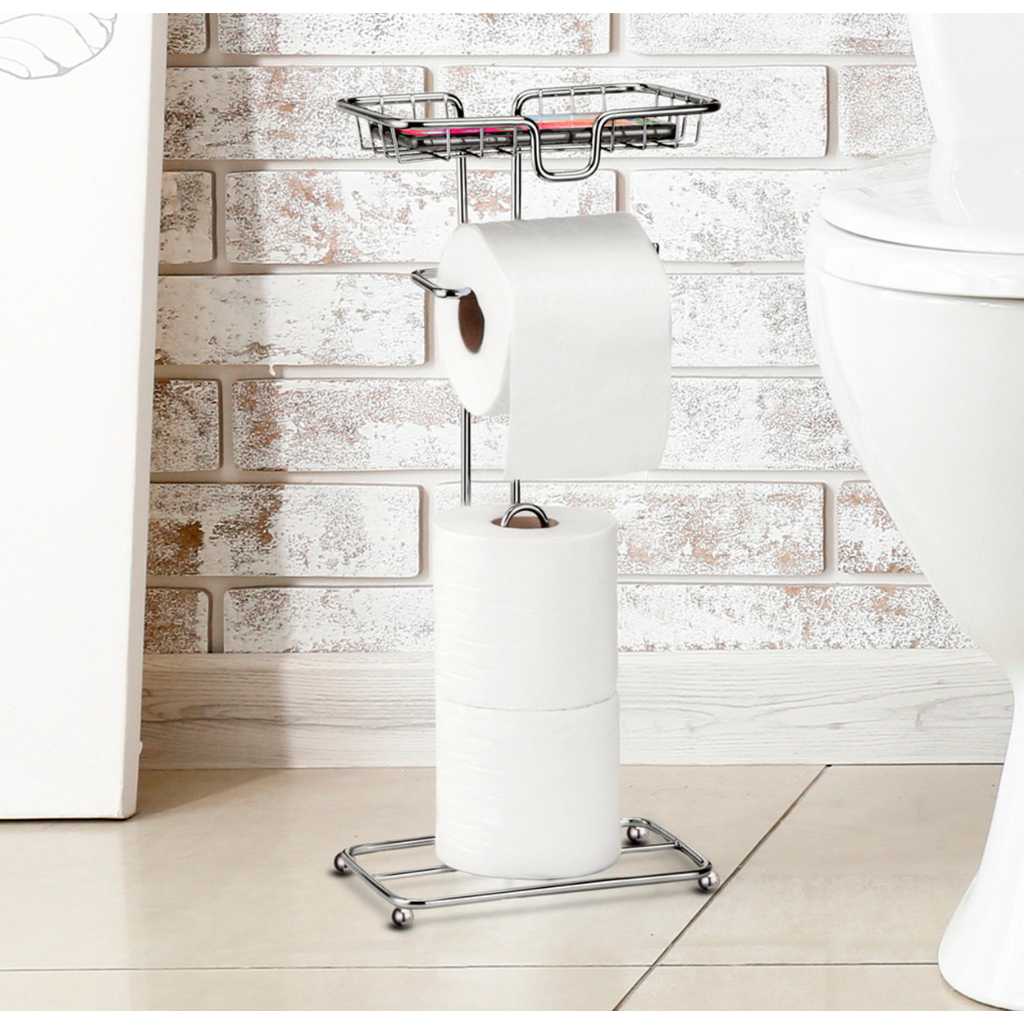 Porta Papel Higiênico Suporte de Chão com Suporte de Celular e Lençol Dourado Preto Cromado Arthi