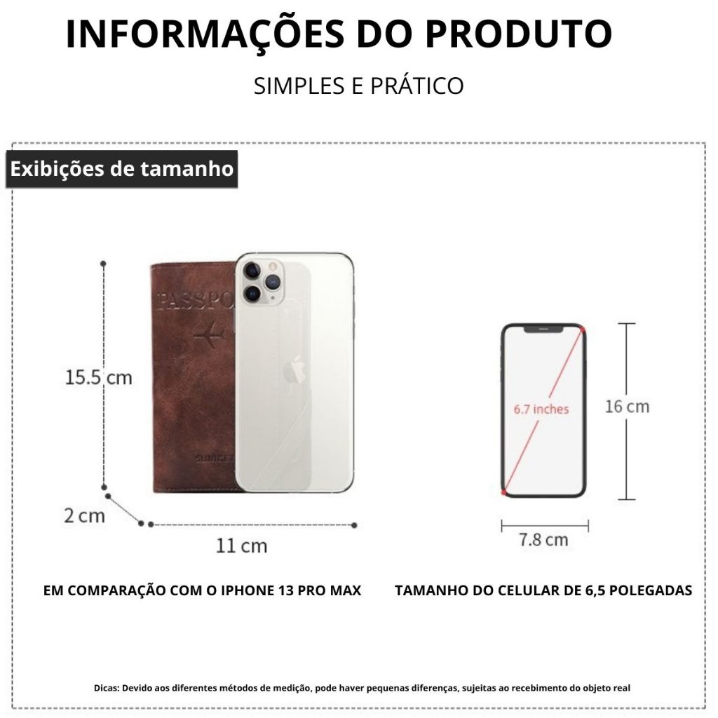 DESCRIÇÃO Carteira Passport Importada de alta qualidade Fotos Real do Produto que vai Receber TAMANHO : 9,5 CM X13,5 CM (TAMANHO CONVENCIONAL PADRÃO) 3 REPARTIÇÕES PARA CARTÕES 1 REPARTIÇÃO FALSA 1 REPARTIÇÃO COM VISOR PARA FIXAÇÃO Couro Importado de altíssima Qualidade EXCELENTE ACABAMENTO POSTAGEM IMEDIATA APÓS ENVIO NOTIFICAMOS O RASTREIO VEJA MINHAS QUALIFICAÇÕES POSITIVAS POSTAGEM IMEDIATA E ENTREGA RÁPIDA, APÓS ENVIO NOTIFICAMOS O CODIGO DE RASTREIO EM ESTOQUE, POSTAGEM IMEDIATA IMPOSSÍVEL NÃO GOSTAR!!! IDEAL PARA PRESENTES!!!!