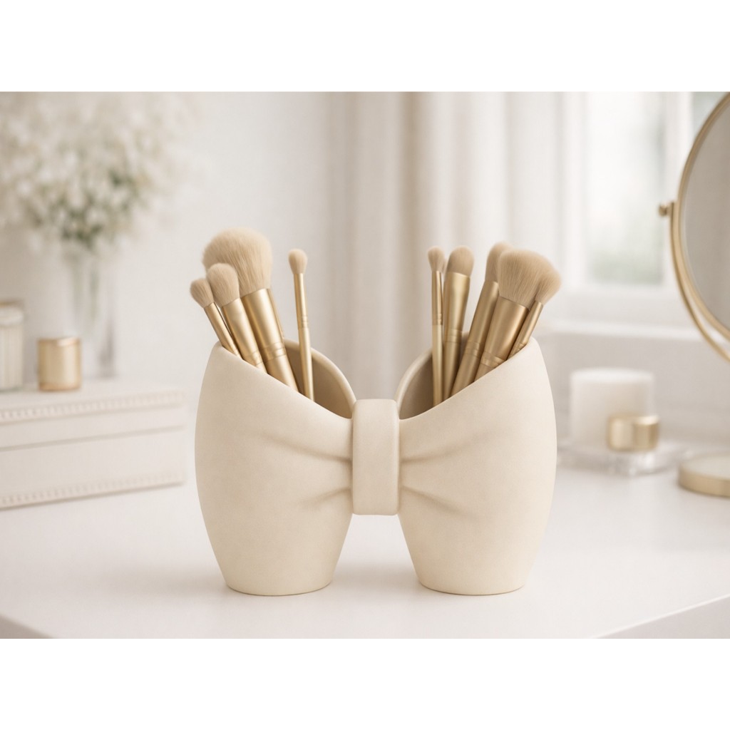 Porta Pincéis de Maquiagem Laço Coquette - Organizador de Mesa Decorativo (Várias Cores)