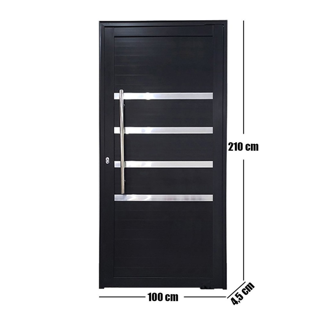 Porta Pivotante de Alumínio Preto Com Puxador e Friso Linha 30 - Bergamo Nas medidas de 2,10 m de altura e com larguras de 100 e 120 cm são muito procuradas para construções em prédios, comércios e residências. O produto acompanha batente, fechadura rolom com par de chaves e puxador. Como instalar A porta Pivotante deve estar em nível e prumo, imprescindível estar em esquadro. É preciso verificar esses pontos para que sua funcionalidade e qualidade seja 100%. Não utilizar para instalação em sua porta pivotante espuma expansiva pois o uso incorreto desse produto pode danificar sua porta. Especificações Lado de Abertura: a definir Espessura e linha do perfil Roma – 30mm x 80mm Aplicado em local: interno ou externo Peso (kg): 22 Garantia: 12 Meses Voltagem: Não se Aplica Altura (cm): 210 Largura (cm): 100 Possui Grade: Não Tipo de Porta: Abrir Tipo de Vidro: Não possui Vidro incluso: Não Cor do Batente: Preto Tipo de Parede: Alvenaria Acompanha Trinco: Não Escala de Brilho: Semi-Brilho Lado de Abertura: Direita Número de Folhas: 1 Textura da Porta: Frisada Acompanha Batedor: Não Acompanha Batente: Sim Acompanha Puxador: 2 Origem do Produto: Nacional Ambiente Principal: Sala de Estar Largura do Batente: 4.5 Acompanha Fechadura: Sim Acompanha Guarnição: Não Material do Batente: Alumínio Material do Puxador: Aço Acabamento do Puxador: Inox Tipo de Puxador da Porta: Externo Possui Isolamento Acústico: Não Acompanha Manual de Instalação: Sim Dimensão da Maquina da Fechadura: 25 Material Principal Construção e Acabamento: Alumínio Marca: Esquadrias Bergamo Cor do Produto: Preto Itens Inclusos: 1 Porta Cor Predominante: Preto Linha ou Coleção: Linha 30 Tamanho do Produto: 210cm x 100cm