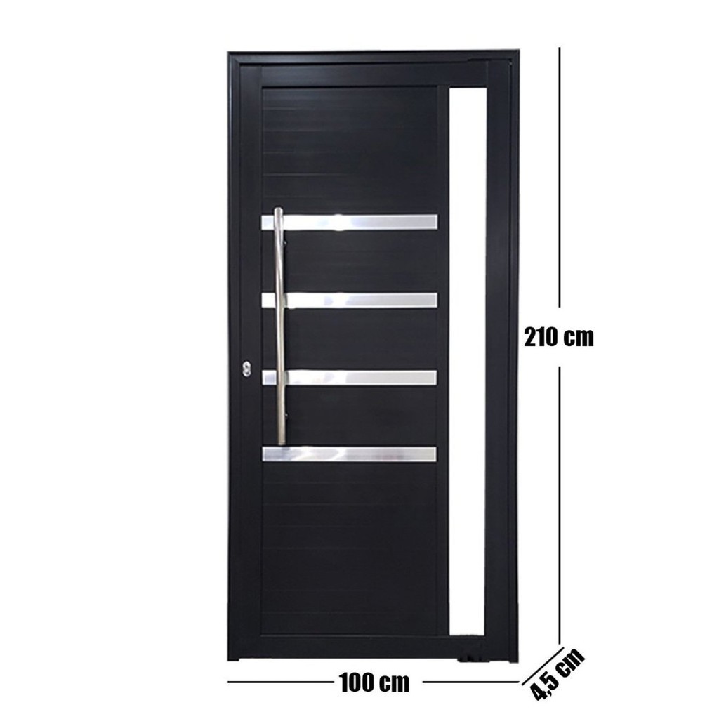 Porta Pivotante de Alumínio Preto Com Puxador, Friso e Vidro Linha 30 - Bergamo Nas medidas de 2,10 m de altura e com larguras de 100 e 120 cm são muito procuradas para construções em prédios, comércios e residências. O produto acompanha batente, fechadura rolom com par de chaves e puxador. Como instalar A porta Pivotante deve estar em nível e prumo, imprescindível estar em esquadro. É preciso verificar esses pontos para que sua funcionalidade e qualidade seja 100%. Não utilizar para instalação em sua porta pivotante espuma expansiva pois o uso incorreto desse produto pode danificar sua porta. Especificações Lado de Abertura: a definir Espessura e linha do perfil Roma – 30mm x 80mm Aplicado em local: interno ou externo Peso (kg): 22 Garantia: 12 Meses Altura (cm): 210 Largura (cm): 100 Cor do Vidro: Incolor Possui Grade: Não Cor do Batente: Preto Acompanha Trinco: Não Escala de Brilho: Semi-Brilho Lado de Abertura: Direita Textura da Porta: Frisada Acompanha Batedor: Não Acompanha Batente: Sim Acompanha Puxador: 2 Origem do Produto: Nacional Ambiente Principal: Sala de Estar Largura do Batente: 4.5 Acompanha Fechadura: Sim Acompanha Guarnição: Não Material do Batente: Alumínio Material do Puxador: Aço Acabamento do Puxador: Inox Tipo de Puxador da Porta: Externo Possui Isolamento Acústico: Não Acompanha Manual de Instalação: Sim Dimensão da Maquina da Fechadura: 25 Material Principal Construção e Acabamento: Alumínio Marca: Esquadrias Bergamo Cor: Preto Cor do Produto: Preto Itens Inclusos: 1 Porta Cor Predominante: Preto Linha ou Coleção: Linha 30 Tamanho do Produto: 210cm x 100cm