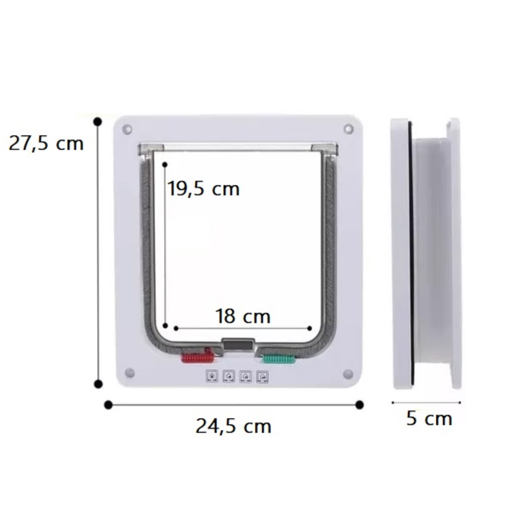 Caros Clientes, por favor, leiam com atenção o anúncio. Isso ajudará a ter certeza do que está comprando. CONTÉM 01 (UMA) Portinha de Passagem Premium Para Cães e Gatos || Portinha para Animais é muito durável e prática de instalar, para portas e paredes de até 50 mm de espessura; || Ideal para manter a sua porta fechada e dar livre acesso ao seu pet para ir e vir; || Vem com uma trava para fechá-la quando você precisar; || Quando instalada em um ambiente com ar-condicionado, você não vai precisar ficar levantando para abrir e fechar a porta toda vez que o pet quiser dar uma saidinha, para beber água ou fazer xixi, ou ainda quando ele quiser voltar; || Se você tem um quintal ou varanda, também pode instalar na porta de casa e deixar que seu pet entre e saia sempre que quiser; || Possui 4 maneiras de trava deixando como desejar; || A tampa feita em acrílico facilita o treinamento do PET. DIMENSÕES: Medida Externa: || Altura: 27,5 cm || Largura: 24,4cm || Espessura: 5cm Abertura para Passagem: || Altura: 19,5 cm || Largura: 18 cm || Peso: 356 g || Material: Polipropileno e Poliestireno Obrigada por visitar nossa loja!! Qualquer dúvida é só mandar uma mensagem!