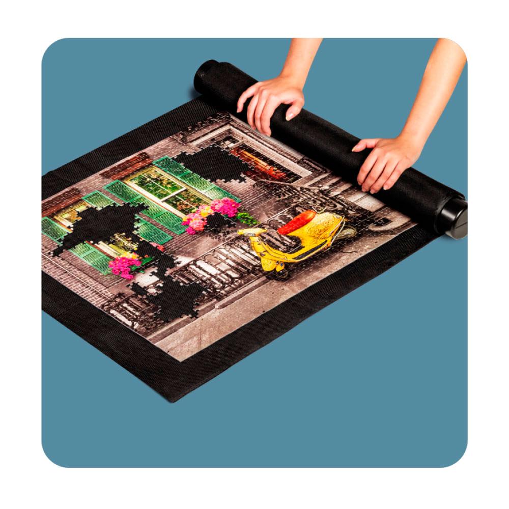 Um sistema muito prático e ideal para você guardar seu puzzle com segurança durante a montagem até terminá-lo. Com Porta-Puzzle você pode continuar montando seu puzzle mesmo durante as suas viagens. Basta enrolar e carregar, sem correr o risco de desmontar ou de perder peças! Protege as peças contra perda e poeira! Guarde seu puzzle em montagem e leve-o para onde quiser! Compatível com puzzles Grow até 1000 peças (aproximadamente 50 x 70 cm) Tamanho da base 60,0 x 90,0 cm