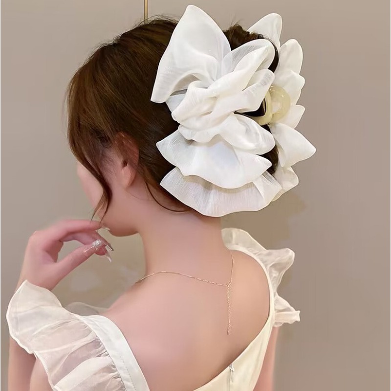 Porta Rabo De Pônei-Garra De Cabelo De Temperamento Elegante-Clip De Agarramento De Laço De Malha Dupla Face-Clipes Grandes De Tubarão-Estilo INS Coreano , Popular-Para Meninas Mulheres-Acessórios