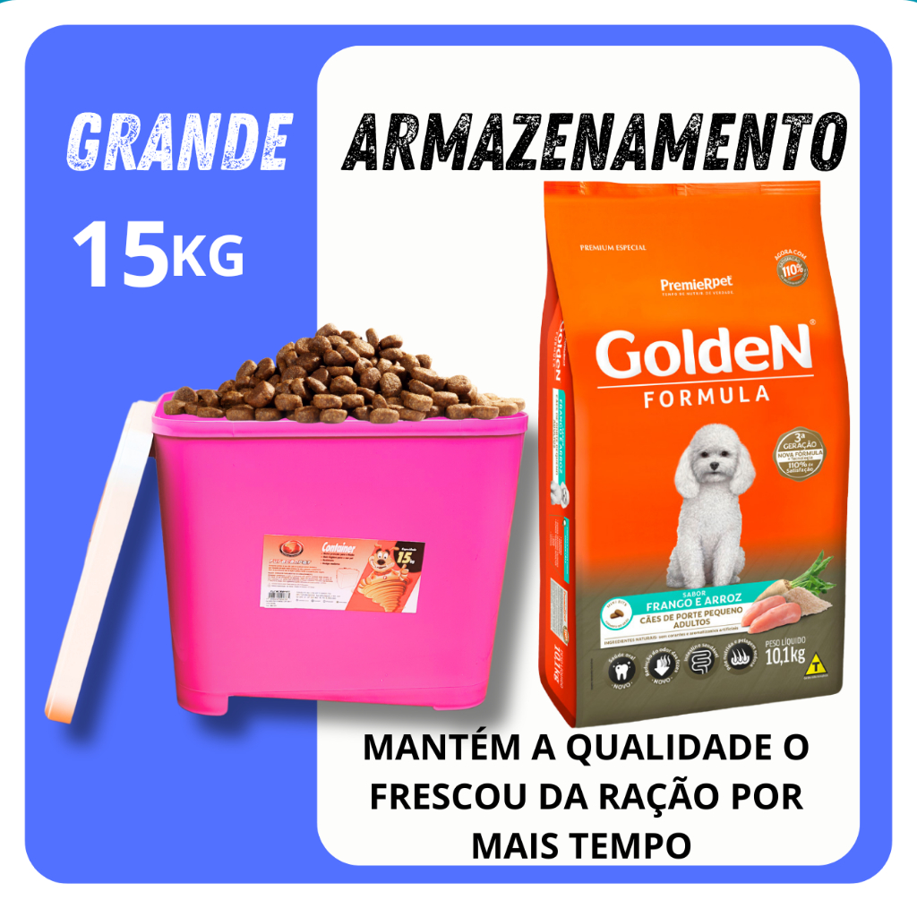 Porta Ração 15 kg Para Armazenar Ração de Cachorro e Gato Furação Pet Petshop