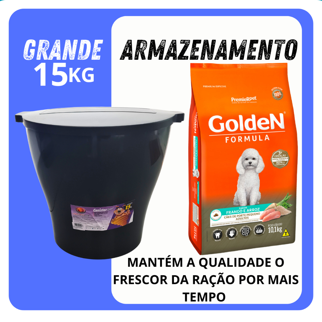 Porta Ração 15kg Furacão Pet com Tampa Vedada e Trava Cachorro e Gato Armazena e Conserva Alimentos