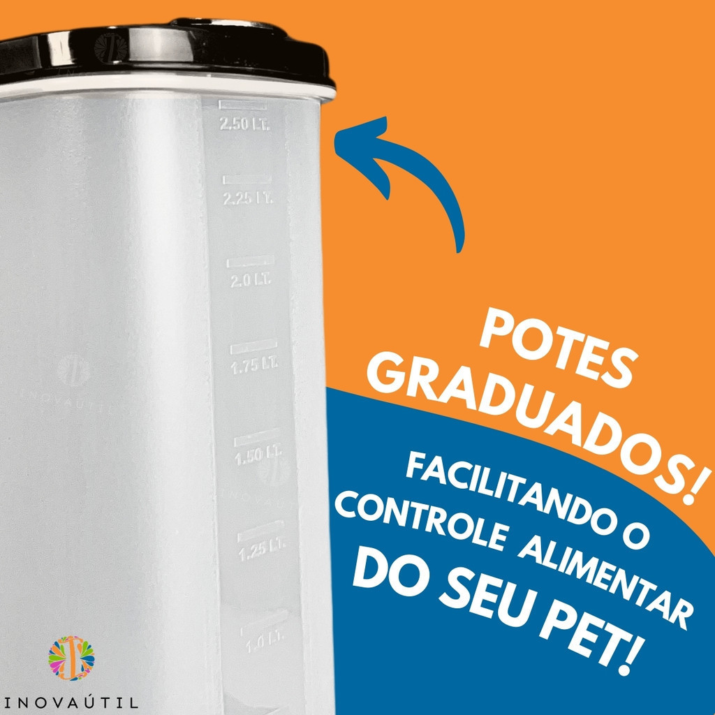 Mantenha a ração e petiscos do seu pet sempre frescos e bem armazenados, o Porta ração e petisco organiza e otimiza espaço! Se busca praticidade na hora de alimentar seu pet, este pote é a solução ideal. Feito de plástico durável e transparente, ele permite que visualize a quantidade de ração restante sem precisar abrir o pote. Além disso, a graduação integrada facilita a dosagem precisa da ração, ajudando no controle alimentar do seu cão ou gato. Com capacidade de 2,5 litros, é perfeito para armazenar a quantidade certa de ração, mantendo-a sempre fresquinha. BENEFÍCIOS ✔ Conservação da Ração/Petisco ✔ Com graduação ✔ Tampa fácil de abrir e fechar ✔ Praticidade CARACTERÍSTICAS DO POTE 2,5L Material: Plástico Peso Aproximado: 215gr Conteúdo: 2 Potes 2,5L Altura: 23,2 cm Largura: 19,3 cm Profundidade: 9,5 cm _________________________ - Trabalhamos sempre com as fotos reais dos produtos. - Garantimos a qualidade de nossos produtos, entrega e satisfação do cliente. Em caso de qualquer dano ou quebra no transporte resolveremos o mais breve possível sem nenhum custo adicional. ____________________________ PERGUNTAS FREQUENTES: Produto a pronta entrega? Qual o prazo de envio? R: Sim, nossos produtos estão todos em estoque próprio, comprando agora enviaremos até o próximo dia util. Enviam nota fiscal? R: Enviamos todos os nossos produtos com nota fiscal.