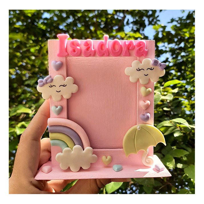 Porta retrato para fotos no tamanho 10x8 no tema Chuva de amor. Lembrancinha diferente e criativa para oferecer aos seus convidados e deixar sua festa ainda mais encantadora. Também pode ser usada como centro de mesa e como sua imaginação levar. Neste modelo não é possível a personalização com nome composto, se for esse o caso, favor selecionar o modelo para fotos 10x15. ATENÇÃO AO TEMPO PARA PRODUÇÃO SE O NOME DESEJADO NÃO FOR ENVIADO EM ATÉ 24H, O PRODUTO SERÁ ENVIADO SEM NOME. ATENÇÃO: Verificar as dimensões do produto e conferir se o endereço de entrega cadastrado está correto. Altura: 11.05 cm Largura: 10.00 cm Comprimento: 4.00 cm Peso: 80 g