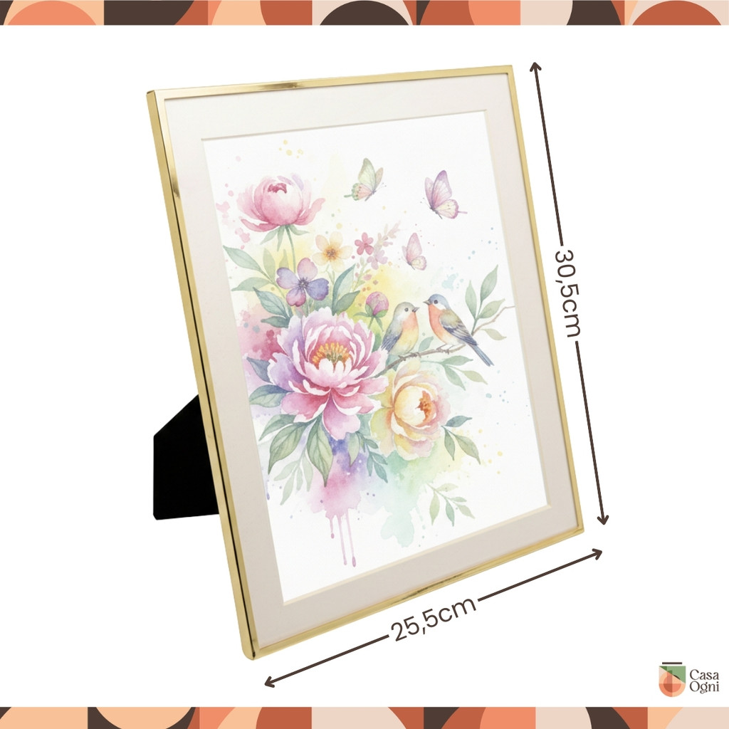 Casa Ogni - A alma da casa está em cada detalhe. O Porta Retrato possui um design clássico e uma moldura simples na cor dourada, a parte de trás é confeccionada em veludo e o modelo acompanha uma moldura em papel resistente que pode ser usada para criar um efeito visual único em suas fotos, ele é perfeito para quem ama itens atemporais e chiques. O porta retrato pode ser usado na posição horizontal e vertical, tanto na mesa quanto pendurado em paredes. Decore sua casa com estilo e com suas melhores lembranças. Perguntas Frequentes: • Qual é o material do porta retrato? Aço Inox e Vidro. • Quais as medidas da moldura? 25,5 x 30,5 cm (Largura x Comprimento). • Qual o tamanho da foto? 20 x 25cm (Largura x Comprimento). • Ele tem proteção de vidro? Sim. • Posso usar na horizontal? Sim. • Tem gancho para pendurar na parede? Sim. • Tem outros tamanhos? Sim, nos envie uma mensagem que mandamos o link. • Vocês emitem NF? Sim, tanto para PF quanto para CNPJ. Cuidado com o seu produto: • Evite quedas e impactos. Conteúdo da embalagem: 1 Porta-retrato. Aqui na Casa Ogni a nossa missão é garantir que você, cliente, fique satisfeito tanto com nossos produtos quanto com nosso atendimento. Cuidamos de todos os pequenos detalhes para que sua experiência de compra seja incrível. Qualquer dúvida nos faça uma pergunta e responderemos o mais rápido possível. Obrigado por escolher a Casa Ogni.