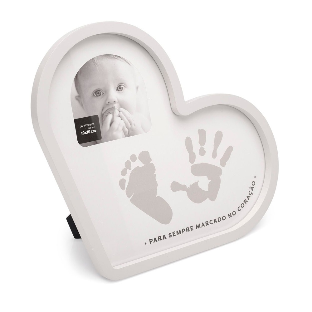 Este lindo porta-retrato vai te lembrar todos os dias daquele amor que ficará sempre marcado no coração! Muito além de apenas uma moldura para fotografia, esse produto permite que as mamães e os papais eternizem uma foto especial do seu bebê ao lado do carimbo das mãos (ou dos pés)! O registro e a foto ficarão lado a lado, dentro desse porta-retratos em formato de coração, trazendo mais carinho e amor para o seu cantinho favorito. Lindo, né? E além de tudo, o carimbo pode ser utilizado até três vezes e não transfere para a pele! Contém 1 porta-retrato, 1 carimbo e 1 manual de instruções Material: MDF, vidro, papel e tinta Tamanho do porta-retrato (LxAxP): 29 cm x 26,7 cm x 1,7 cm Para uma foto de até 10 cm x 10 cm