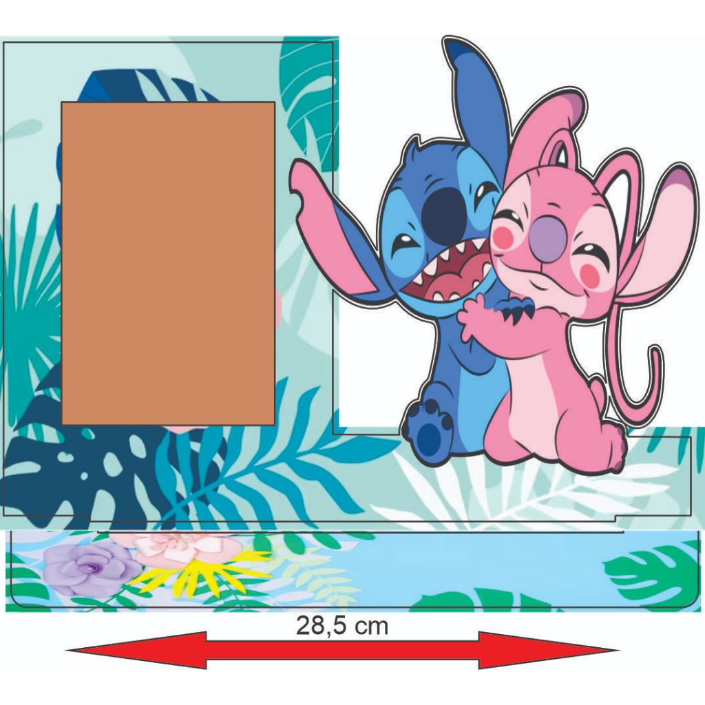 Lindo Porta Retrato do Lillo Stitch e Angel para decorar seu ambiente. Confeccionado em MDF de 3,0 mm revestido com vinil de alta qualidade proporcionando beleza e requinte para seu ambiente ou decoração de festas. O espaço é para acomodar uma foto 10 x 15 cm.