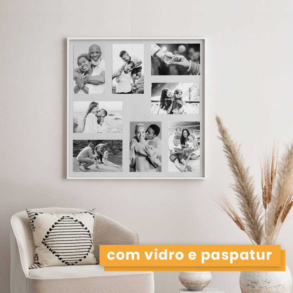 PORTA-RETRATO MULTIFOTOS QUADRADO 8 FOTOS 43X43 Decore suas paredes com estilo e praticidade. Este PORTA-RETRATO MULTIFOTOS é ideal para destacar momentos especiais e adicionar um toque sofisticado à sua casa ou escritório. FICHA TÉCNICA - Modelo: PORTA-RETRATO MULTIFOTOS - Capacidade: 8 fotos 10x15 cm - Estrutura: MDF de alta qualidade - Proteção frontal: Vidro transparente - Paspatur: Papel cartonado especial - Cor: Preto ou Branco - Estilo: Moderno e clean CONTEÚDO DA EMBALAGEM: - 1 painel multifotos (não acompanha fotos decorativas) Por que escolher este painel? Capacidade para 8 fotos de 10x15cm Design moderno com paspatur, valorizando as fotos e trazendo um acabamento clean e elegante. Proteção com vidro de alta qualidade, garantindo brilho e durabilidade para suas imagens. Combina com diversos estilos de decoração, como minimalista, industrial, moderno e clássico. Uma opção de presente perfeita. Ideal para presentear em aniversários, casamentos ou datas especiais, unindo funcionalidade e beleza. Envio rápido e embalagem segura. O painel será embalado cuidadosamente para chegar em perfeito estado até você. Garanta o seu e transforme suas lembranças em arte.