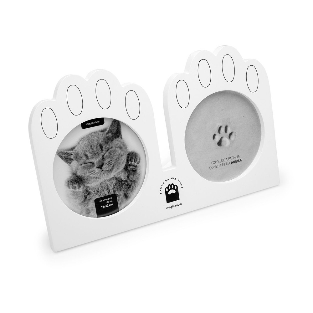 Alô, mães e pais de gatinhos! Um presente mais que especial para marcar bons momentos do seu felino é o Porta-Retrato Registro de Gato Mia Vida. De um lado, um porta-retrato (para uma foto de até 12x12 cm). Do outro, a patinha do seu gato. Pra ficar registrada e mostrar o quanto o seu bichinho de estimação é especial na sua vida! O porta-retrato vem com um saquinho de argila para você encaixar no local indicado e pressionar a pata do seu gatinho, deixando essa marca registrada pra sempre! Afinal, quem não ama seu bichano? Também é uma ótima opção de presente pra quem tem um gato e não esconde o amor que sente por ele. Porta-retrato em forma de amor: A patinha do amor da mia vida! Contém 1 unidade. Tamanho único. Material: MDF, vidro e argila. Capacidade: 1 foto de até 12x12 cm. Atenção: Após inserir a argila na moldura, não é possível removê-la. Com o tempo a argila pode sofrer alterações, como por exemplo, craquelar ou ressecar dependendo das condições de temperatura do ambiente.