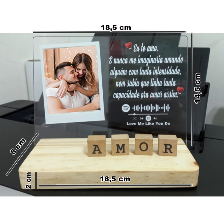| Porta Retrato Spotify Acrilico com Base Pinos, Frase AMOR Cubinho -... este produto | R$ 65,00 | — | 4.9/5 | 4 |