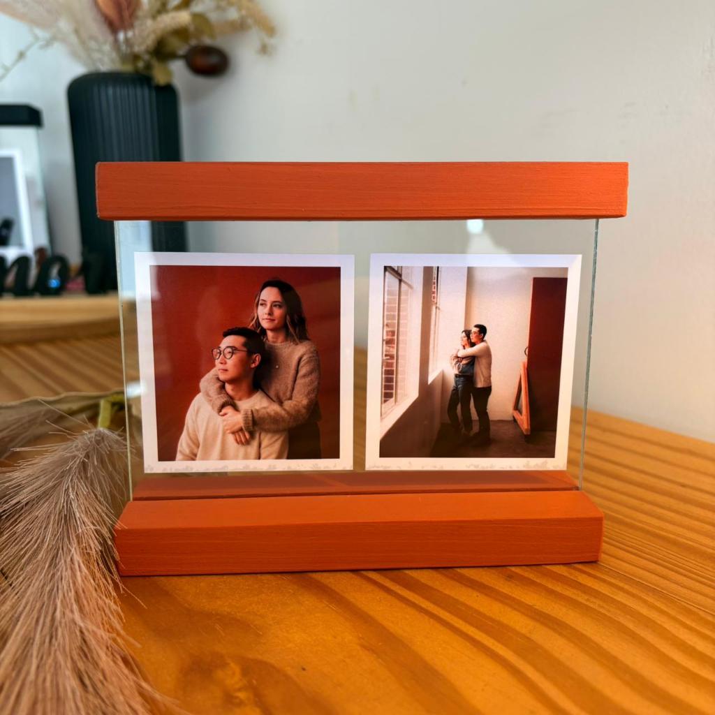 ATENÇÃO: NÃO ENVIAMOS PRÉVIA E NEM FOTOS. Isso atrasa nosso trabalho e o envio dos pedidos. Pedimos que nos mande as fotos e frases organizadas e não fiquem trocando de informações para não haver erros. Seja breve, assim agiliza nosso trabalho e garante que você tenha seu produto o mais breve possível em mãos! O quadro decorativo polaroid possui um designer minimalista complementando sua decoração. Temos diversas opções de cor na aba variações. Produzido com dois vidros 2mm 10x15 cm e madeira aproximadamente 15 cm de largura e 4 cm na base que apoia, duas fotos com qualidade fotográfica medindo 7x7 cm. Quadro ideal para fotos na horizontal ou quadradas. As fotos enviamos junto com o quadro, após a compra entrar em contato via C H A T. SE O CLIENTE NÃO ENVIAR AS FOTOS NO PRAZO DE 12 HORAS APÓS A COMPRA, ENVIAREMOS O SEU PRODUTO SEM AS FOTOS. SE OPTAR POR NÃO QUERER AS FOTOS, NOS AVISE PARA FAZER O ENVIO IMEDIATO. DÚVIDAS FREQUENTES: 1) Acompanha as fotos? SIM 2) Da pra colocar frase, qr do spotify, emoji, data, etc.? NESSE MODELO NÃO ADICIONAMOS NA FOTO, SOMENTE NA MADEIRA 3) Quantos dias para o envio do produto? O ENVIO É FEITO DENTRO DO PRAZO, VAI DEPENDER DA DEMANDA DO PRODUTO PARA O ENVIO, MAS NÃO SE PREOCUPE, TENTAMOS AGILIZAR AO MÁXIMO POSSÍVEL 4) Demora quantos dias para chegar? NÃO TEMOS ESSA INFORMAÇÃO, ENTÃO PEÇO QUE VERIFIQUE A PREVISÃO QUE A SHOPEE LHE DÁ AO CONSULTAR O VALOR DO FRETE NA PÁGINA DO PRODUTO. 5) Como faço o envio das fotos? APÓS REALIZAR O PAGAMENTO E O MESMO FOR APROVADO, NOS ENVIE IMEDIATAMENTE AS FOTOS NO C H A T, NA MAIORIA DAS VEZES PERDE UM POUCO A QUALIDADE, ENTÃO PEDIMOS QUE SE POSSIVEL NOS ENVIAR O LINK DO G O O G L E D R I V E COM AS FOTOS. Qualquer dúvida estaremos a disposição!
