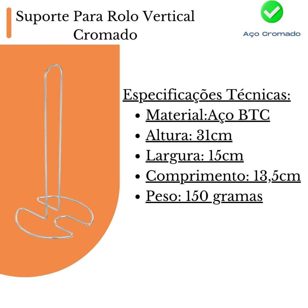 Porta Rolo Vertical Papel Toalha Casa Mesa Cozinha Cromado