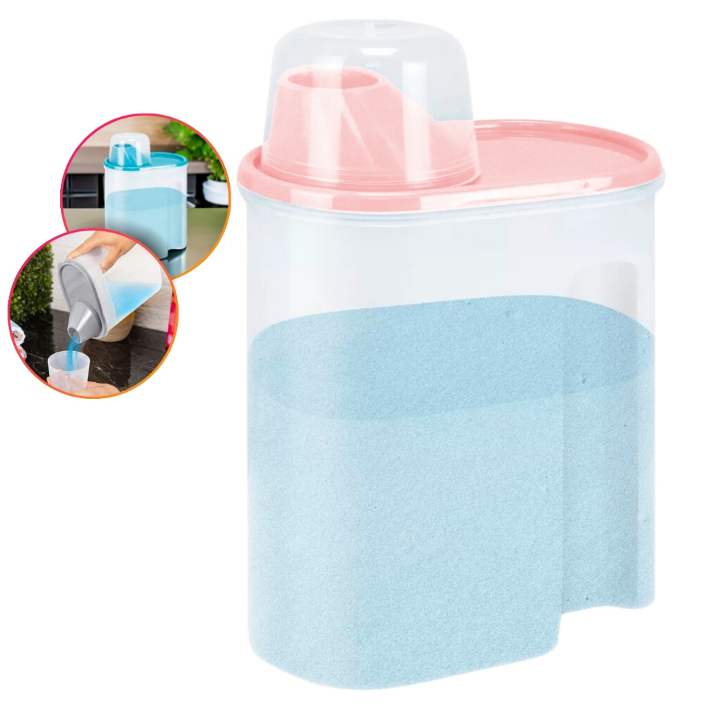 Porta Sabão Em Pó Com Medidor Tampa Dosadora Econômico 1700ml Lavanderia