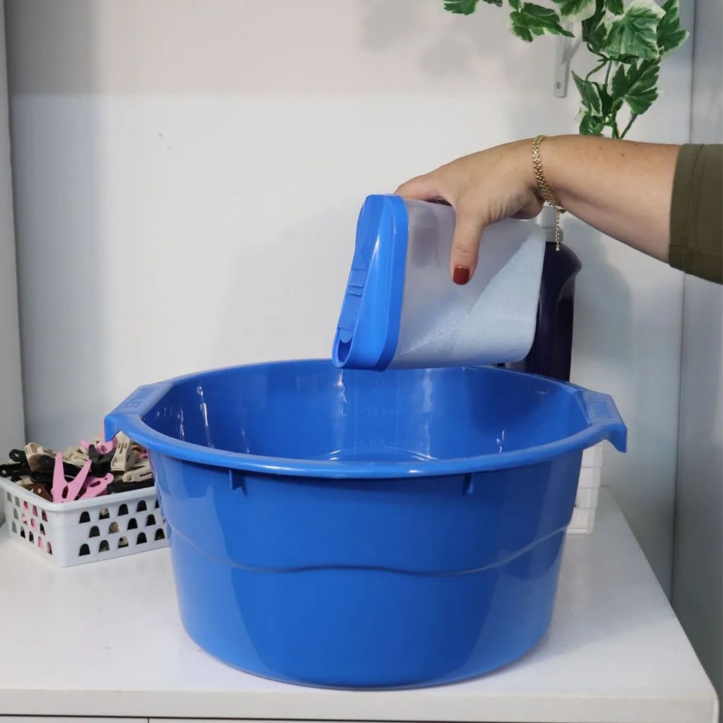Porta Sabão Em Pó Pote Multiuso 900ML Tampa Azul Organizador Lavanderia