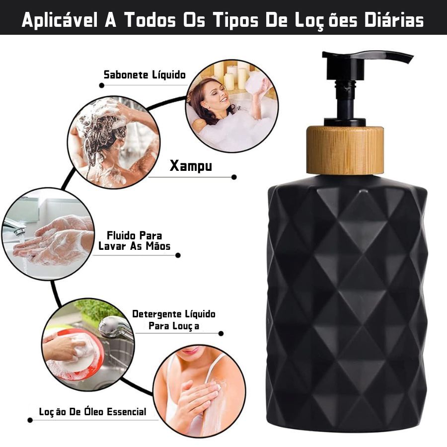 Porta Sabonete Líquido 420ML Diamante Vidro Banheiro Com Tampa De Bambu E Plástico Branco Ou Preto