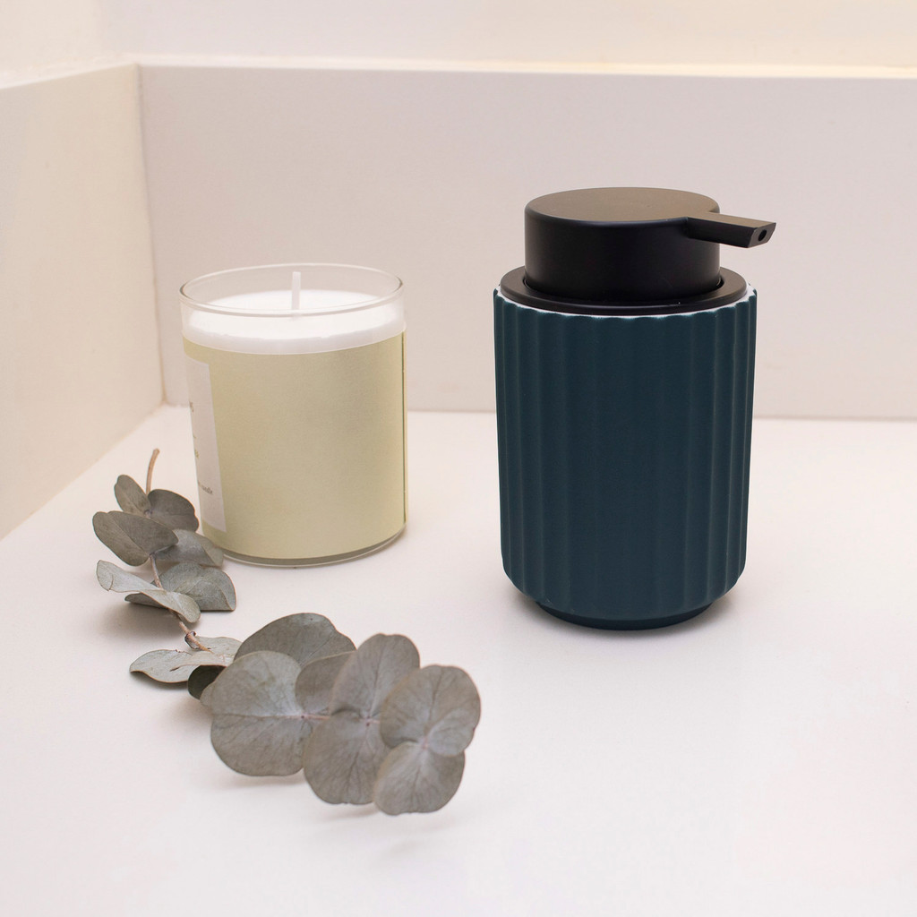 Esse é o porta sabonete líquido de resina canelada verde laguna da OIKOS. Funcional: o ritual de lavar as mãos tem que ser prazeroso é para isso nada melhor do que contar com o auxílio do pump – ele funciona como uma bobina, basta pressioná-la para ejetar o sabonete líquido – além de prático, é super econômico. o pump libera a quantidade certa de sabonete para uma lavada de mão, sem deixar que você desperdice o seu produto. Multiuso: além de porta sabonete, pode ser usado para armazenar cremes hidratantes, demaquilantes, séruns e até detergente. você escolhe! Onde se usa? no lavabo fica ótimo e no banheiro também. e quer uma dica? quando é apoiada em cima de uma bandeja na bancada da pia, do lado da saboneteira, ele fica um charme só! e para quem quer ousar na criatividade, este porta sabonete fica bonito na cozinha e até próximo à maca de massagem :) Decorativo: sua forma arredondada e o seu acabamento fosco trazem uma atemporalidade e versatilidade para a decoração – ele vai bem dos estilos mais clássicos aos mais contemporâneos. Detalhe canelado: todo o charme da tendência “clean lines” dentro de casa. um item indispensável, que também consegue transformar seus ambientes, além de encantar as visitas :) Feito de resina: a poliresina é um material estável e resistente, não deforma e é bem difícil de quebrar. ainda é impermeável e um clássico na decoração. o tom verde laguna fosco também deixa a casa mais moderna e suave. Além da peça avulsa, você encontra outros itens dessa família para deixar sua decoração completa: temos a saboneteira, a escova sanitária com suporte e o porta objetos. Capacidade: 260ml. Cuidados: lave com água e sabão neutro em seguida passe suavemente um pano seco. não utilize produtos químicos ou abrasivos na limpeza. dica: na hora da lavagem, desenrosque o pump e lave à parte. Dimensões do produto: Altura: 10,4Cm Largura: 3Cm