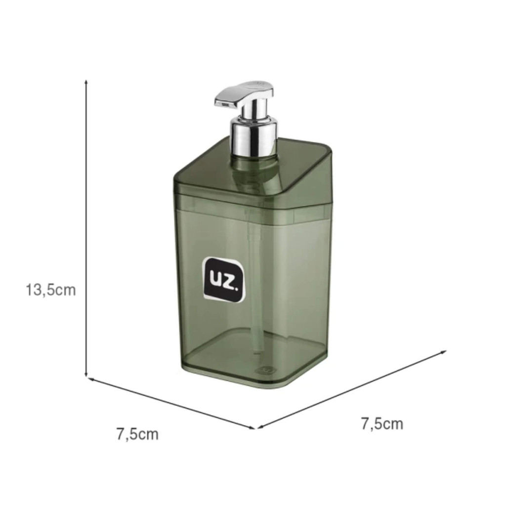 Porta Sabonete Líquido Slim Translúcido Preto UZ Utilidades 350ml Utensílios Banheiro Pia Casa