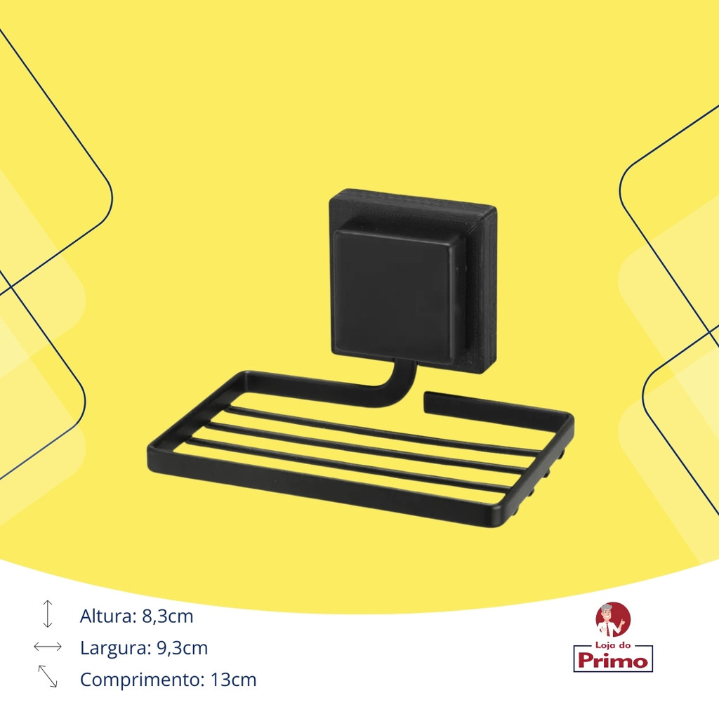 Porta Sabonete Sem Furo Com Fita 3M Parede Preto Piatina Black Arthi
