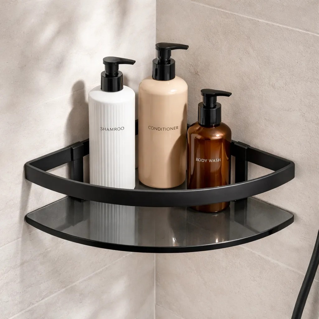 Porta Shampoo Vidro Temperado Reto e Canto Suporte Banheiro Resistente Acessório Lavabo Organizador