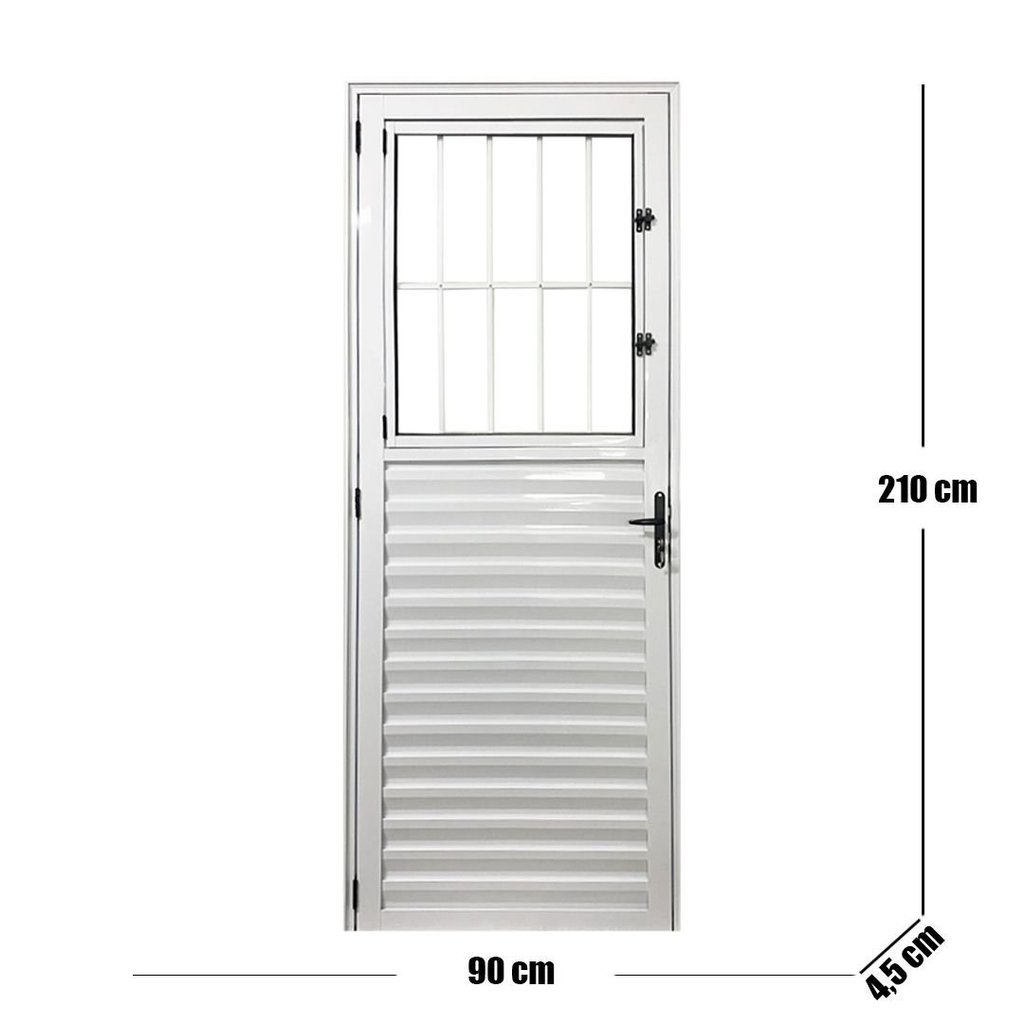 Porta Social Palheta de Alumínio 210 X 90cm Linha 25 Esquadrias Bergamo Abertura Esquerda Esquerda