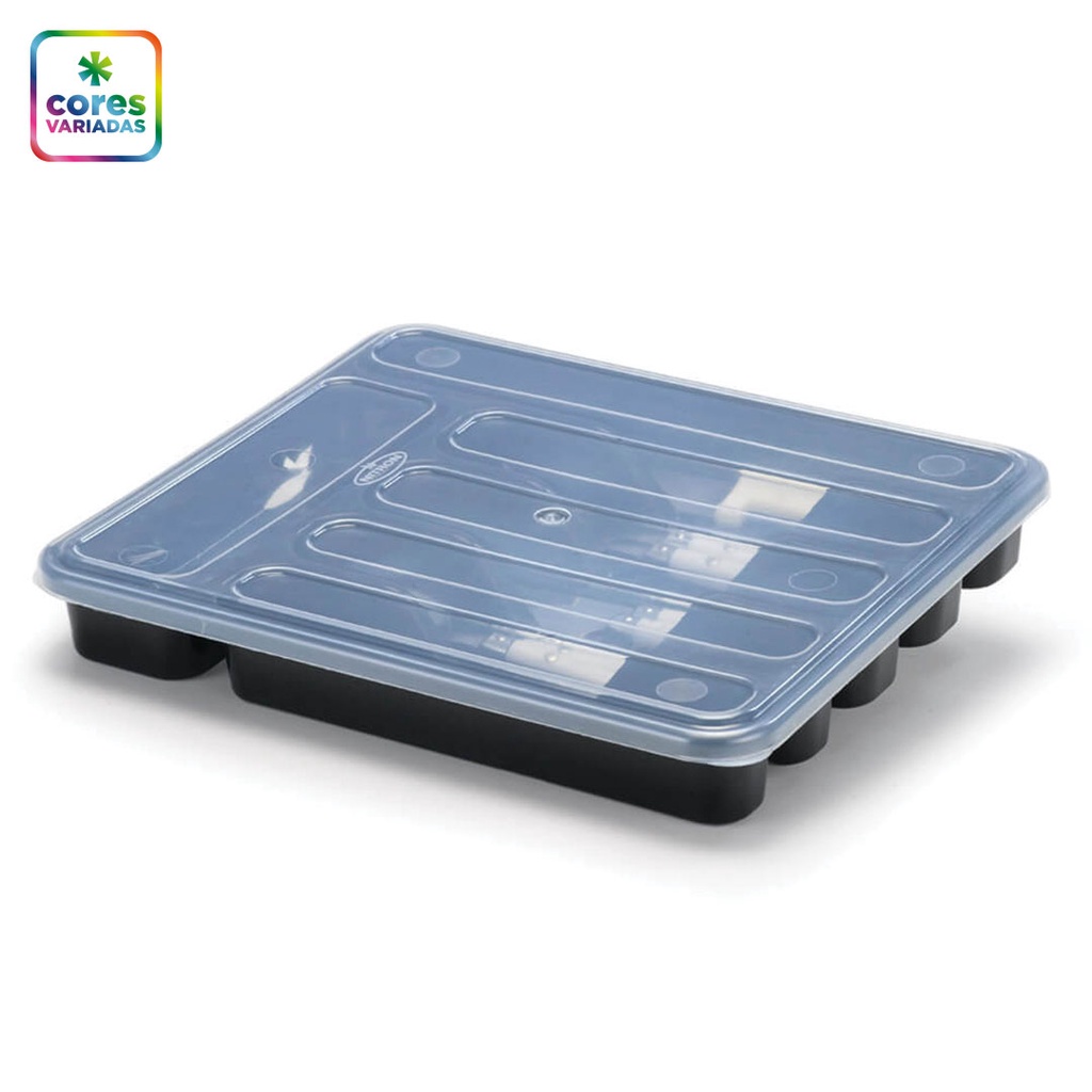 Porta Talher 6 Divisórias Extra Grande Com Tampa Nitron