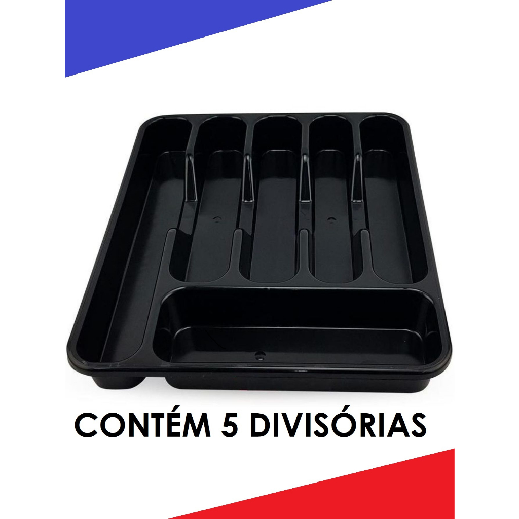 ATENÇÃO .... O NOSSO PRODUTO, TEM 5 DIVISÕES !!! Ideal para a organização de talheres. Pode ser levado direto à mesa ou guardar na gaveta, um ótimo item para sua cozinha ou área gourmet. Acompanha tampa para maior proteção, evitando sujeiras. Medidas: 32cm x 21cm x 4,5cm Duvidas: Qual o material do produto? Polipropileno, plástico resistente. Já vem com a tampa? Sim, a tampa já esta inclusa. Quantas divisórias? São 5 divisórias. O envio é imediato e pronta entrega? Sim, enviamos os pedidos no próximo dia útil, ou no mesmo dia dependendo do horário de coleta. Sempre a pronta entrega. Ficou com alguma duvida? Pode nos chamar no chat, será um prazer atende-la(o)!