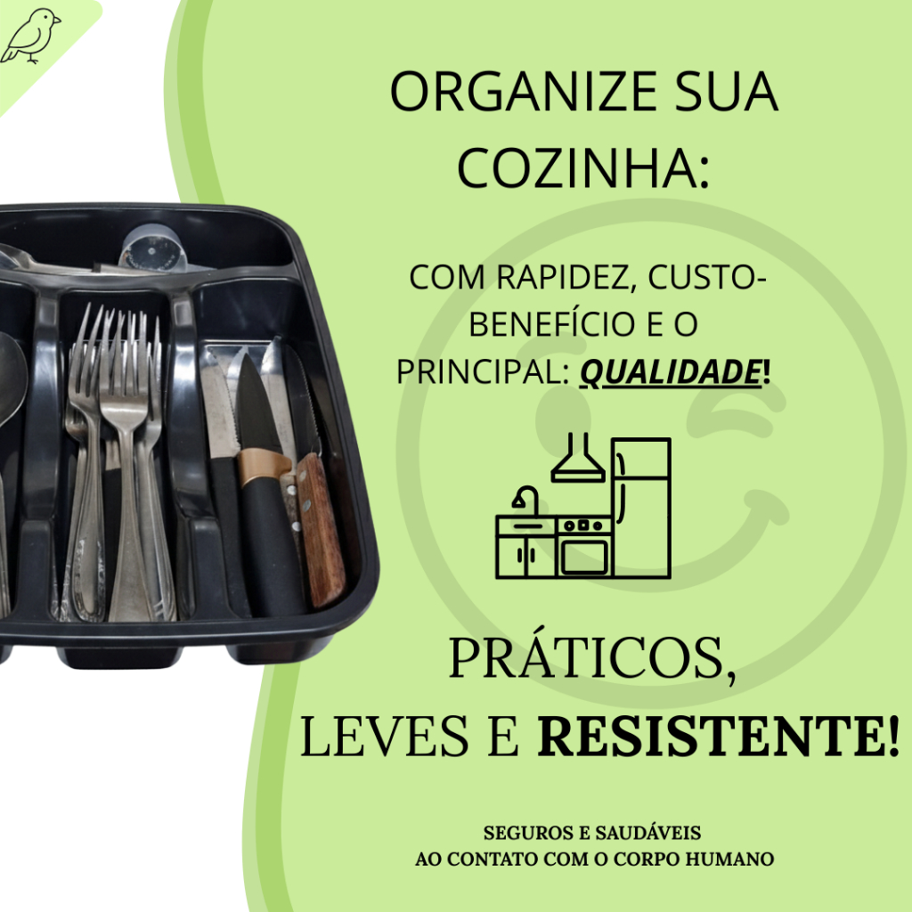 ✨ PORTA-TALHER COM ENCAIXE DE TAMPA ✨ (PRODUTO JÁ TESTADO, NÃO CONTAMINANTE, ENCAIXE FIRME, TAMANHO FIEL) DIMENSÕES: ALTURA: 6 CM LARGURA: 20 CM COMPRIMENTO: 30 CM ✨ Organizar a cozinha começa nos pequenos detalhes — e este porta talher com tampa foi pensado exatamente para isso. Ele mantém seus utensílios protegidos contra poeira, gordura e umidade, garantindo que tudo esteja sempre limpo e pronto para uso. 🖤 Na cor preta e com a tampa transparente, moderna e elegante, não é apenas estética: ela ajuda a conservar garfos, facas e colheres por mais tempo, evitando contato com sujeiras da gaveta ou insetos. Além disso, o encaixe é firme e seguro, prevenindo que os talheres caiam ou se misturem quando a gaveta se movimenta. 📏 Com tamanho inteligente de 23x6, ele cabe em diversos modelos de gaveta, ocupando pouco espaço, mas oferecendo compartimentos suficientes para separar utensílios de diferentes tipos. 🧼 Feito em material resistente e fácil de limpar, o porta talher é perfeito para cozinhas que exigem praticidade, higiene e uma organização duradoura. Seu design otimiza o espaço interno da gaveta, reduz ruídos e evita atritos entre talheres. 💙 Ideal para casas, apartamentos, cozinhas compactas, áreas gourmet e até para motorhomes ou kitnets. Um item simples que transforma sua rotina. (porta talher com tampa,porta talher sem tampa,organizador de talheres com tampa,organizador de talheres sem tampa,porta garfos com tampa,porta garfos sem tampa,porta facas com tampa,porta facas sem tampa,porta colheres com tampa,porta colheres sem tampa,porta utensílios com tampa,porta utensílios sem tampa,porta talher gaveta com tampa,porta talher gaveta sem tampa,caixa de talheres com tampa,caixa de talheres sem tampa,organizador cozinha com tampa,organizador cozinha sem tampa,divisor de talheres com tampa,divisor de talheres sem tampa,estojo de talheres com tampa,estojo de talheres sem tampa,porta talher preto com tampa,porta talher).