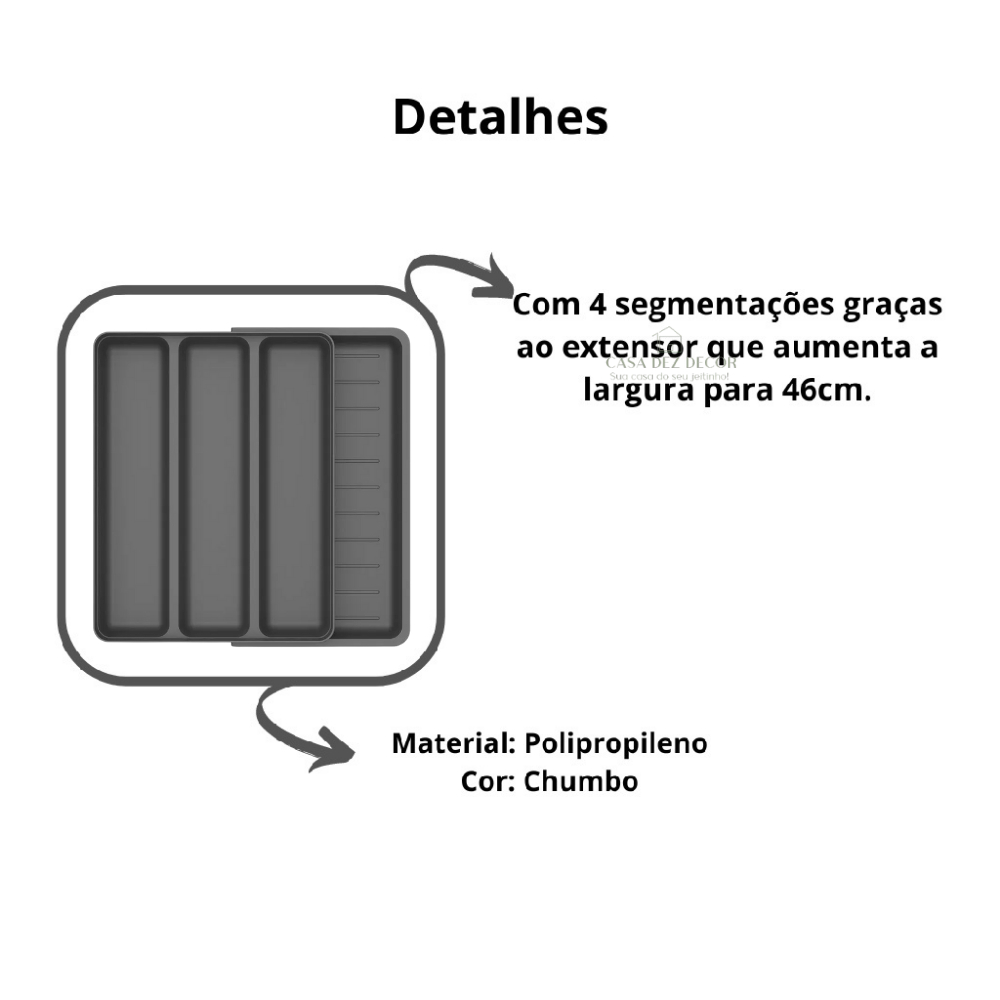 Porta Talher Organizador De Gaveta com Extensor Cozinha 4 Divisorias Utensílios de Cozinha 36 x 28cm