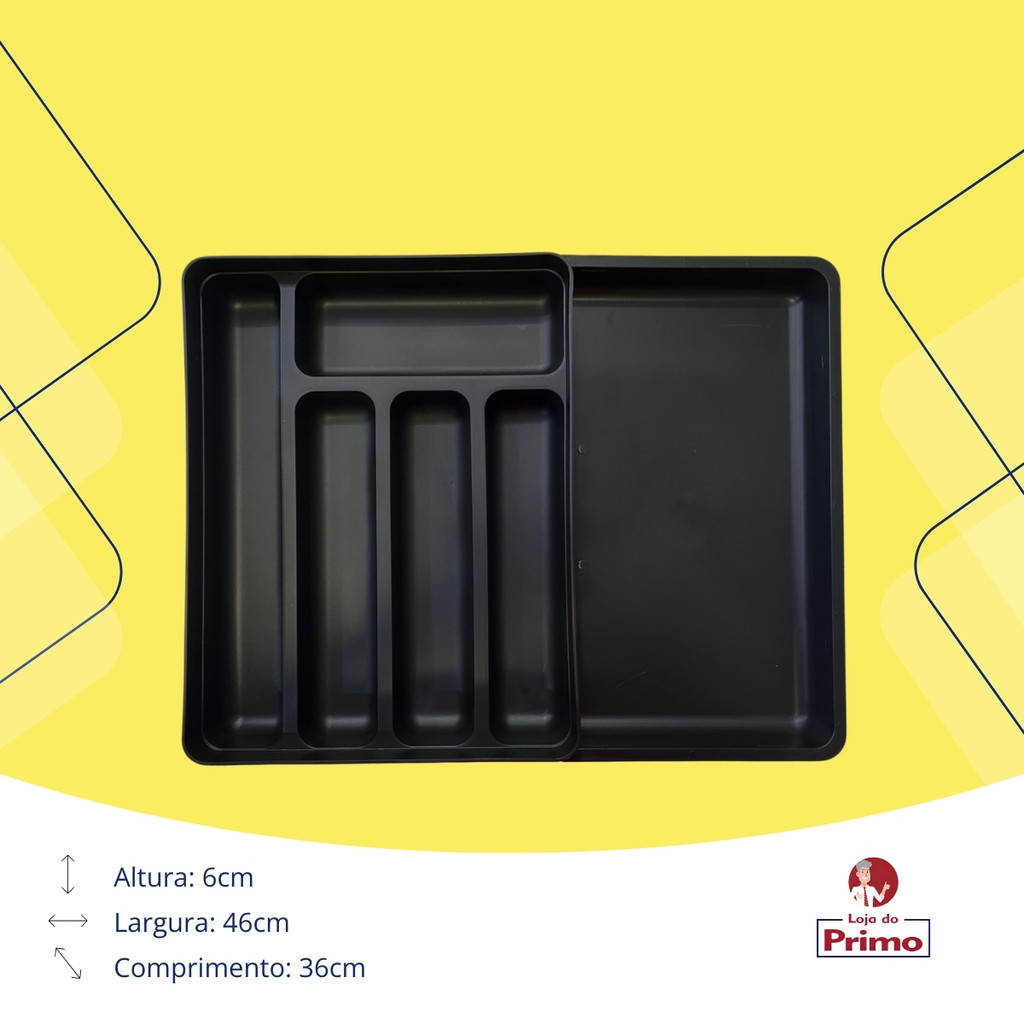 Organize sua cozinha com o Organizador De Gavetas Porta Talheres Extensível Logic da OU. Este produto é a solução perfeita para manter seus utensílios de cozinha em ordem, facilitando o acesso a facas, garfos e outros utensílios. Com seis compartimentos, oferece espaço suficiente para todos os seus talheres. O Organizador De Gavetas Porta Talheres Extensível Logic é feito de plástico resistente, garantindo durabilidade e fácil limpeza. Se encaixa perfeitamente na maioria das gavetas. Além disso, é extensível, permitindo que você ajuste o tamanho de acordo com suas necessidades. - Cor: Preto - Dimensões: - Produto Fechado - A. 6 cm x L. 28 cm x C. 36 cm - Produto Aberto - A. 6 cm x L. 46 cm x C. 36 cm Invista no Organizador De Gavetas Porta Talheres Extensível Logic da OU e transforme a maneira como você armazena seus utensílios de cozinha. Uma cozinha bem-organizada é o primeiro passo para preparar refeições deliciosas e desfrutar de momentos agradáveis com a família e amigos.
