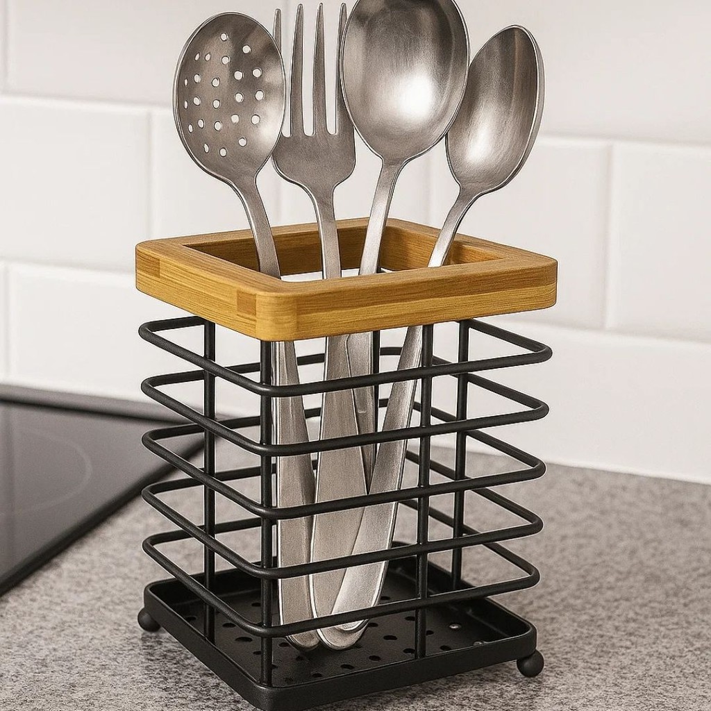 Porta Talheres Aramado Metal / Bambu - Vencedor
