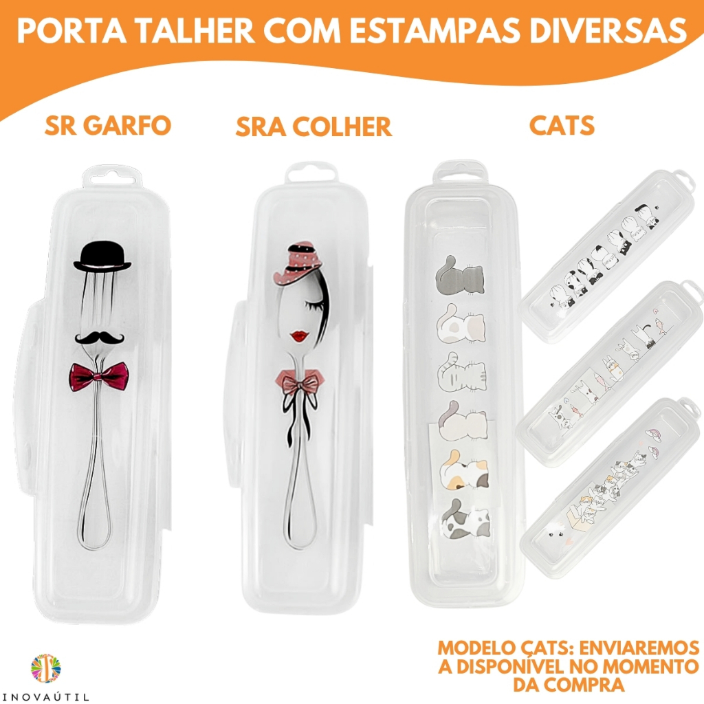 Porta Talher em Estojo, perfeito para ser carregado na bolsa ou mochila, prático leve e higiênico, ótimo parar ser usado em uma viagem, até mesmo quando for trabalhar, são 3 modelos: Sra. Colher, Sr Garfo ou Gatinhos. Pode ser adquirido avulso ou em kit com talheres, Escolha no momento da Compra. ESCOLHA NO MOMENTO DA COMPRA O KIT OU INDIVIDUAL! BENEFÍCIOS ✔ Transporte fácil para qualquer lugar com segurança ✔ Com travas Modelo Estampado ✔ Higiênico ✔ Talheres com qualidade Tramontina, cabo resistente e durável CARACTERÍSTICAS DO PORTA TALHER Material: Plástico Peso Aproximado: 0,47g Altura: 4 cm Largura: 7 cm Comprimento: 24 cm CARACTERÍSTICAS DO GARFO Material: Plástico e Aço Inox Peso Aproximado: 0,23g Largura: 7 cm Comprimento: 24 cm CARACTERÍSTICAS DA FACA Material: Plástico e Aço Inox Peso Aproximado: 0,18g Largura: 7 cm Comprimento: 24 cm CARACTERÍSTICAS DA COLHER Material: Plástico e Aço Inox Peso Aproximado: 0,28g Largura: 7 cm Comprimento: 24 cm ✅Trabalhamos sempre com as fotos reais dos produtos. ✅Estoque a pronta entrega. ✅Garantimos a qualidade de nossos produtos, entrega e satisfação do cliente. Em caso de qualquer dano ou quebra no transporte resolveremos o mais breve possível sem nenhum custo adicional. ❓Dúvidas ou mais informações? Utilize o CHAT responderemos o mais breve possível!