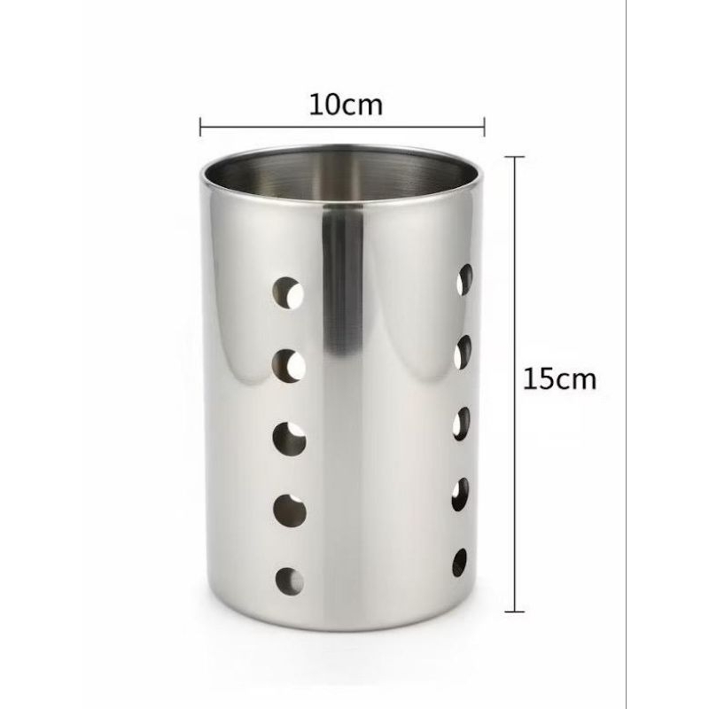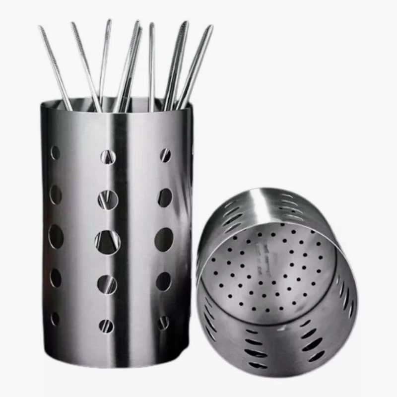 PORTA TALHER UTENSÍLIOS DE COZINHA INOX VAZADO Porta utensílios em aço inoxidável, com furos para escorrimento d'água. Não enferruja. Solução simples, elegante e barata. ESPECIFICAÇÕES TÉCNICAS Dimensões (Altura x diâmetro): 10 x 15cm Construído 100% em aço inox.