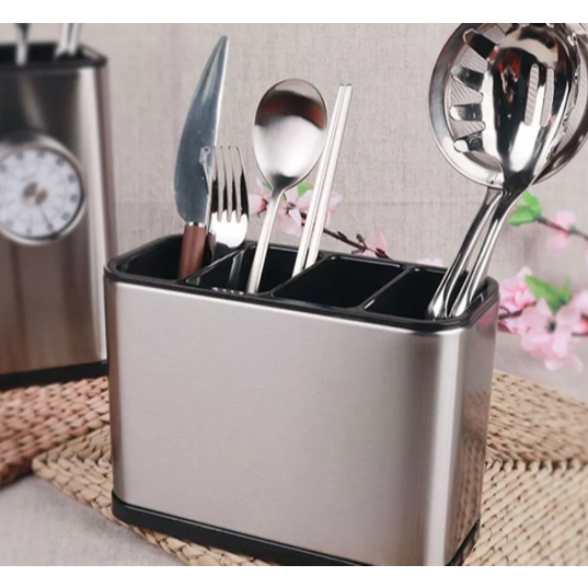Porta Talheres Inox Retangular com Escorredor Suporte para Mesa e Cozinha