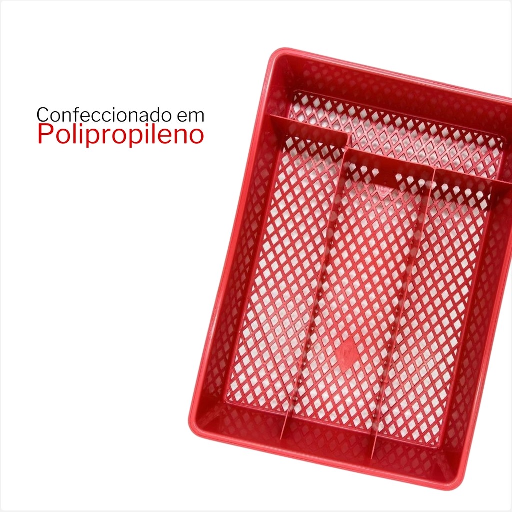 [SOBRE O PRODUTO:] O Porta-Talheres em Plástico com Divisórias é um organizador prático e funcional, ideal para manter talheres organizados na gaveta ou bancada. Com um design vazado em formato de losangos, ele oferece leveza e ventilação, garantindo a higiene dos talheres e um toque de modernidade à cozinha. Fabricado em plástico durável, o porta-talheres é leve e fácil de manusear e limpar. Possui divisórias internas que permitem a organização de garfos, facas, colheres e outros utensílios menores. ------------------------------------------------------------------------------------------- [ESPECIFICAÇÕES DO PRODUTO] - Produto: Conjunto Porta Talheres Escorredor 4 Divisórias Cozinha - Altura: 4cm - Largura: 19,9cm - Comprimento: 27,30cm - Material: Plástico - Cor: Enviada de acordo com a VARIAÇÃO SELECIONADA. - Contém: 1 unidade ------------------------------------------------------------------------------------------- Ficou alguma dúvida? Entre em contato conosco, responderemos o mais rápido possível! Aproveite para conhecer mais de nossa Loja. Sempre buscando produtos inovadores comprometidos a levar mais praticidade para afazeres domésticos!