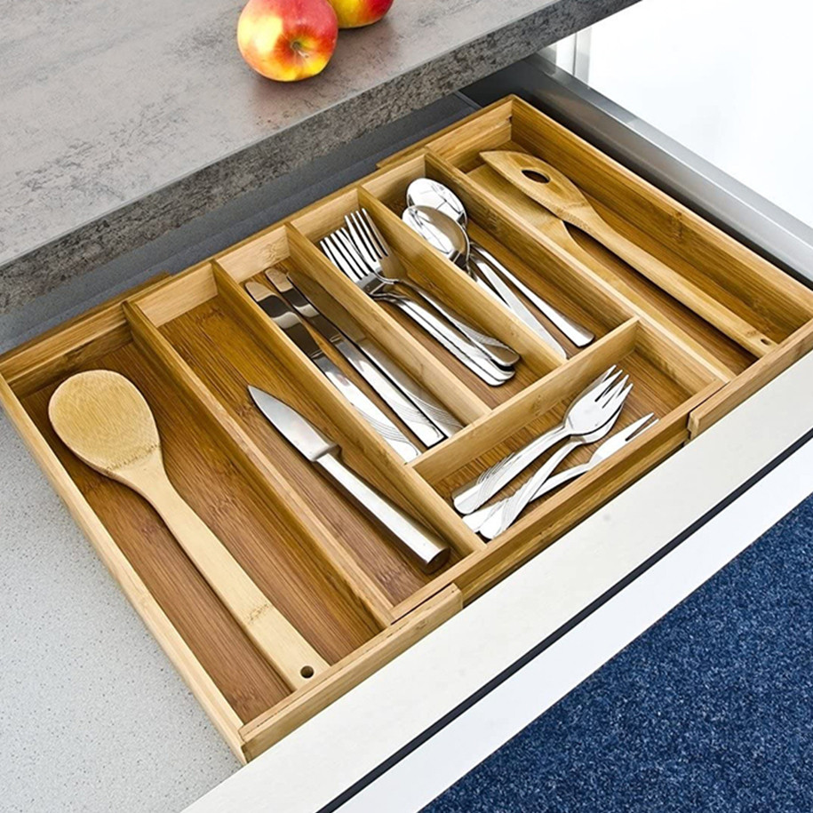 Porta Talheres Organizador Gaveta Bambu 7 Divisoria Extensivel Ajustavel