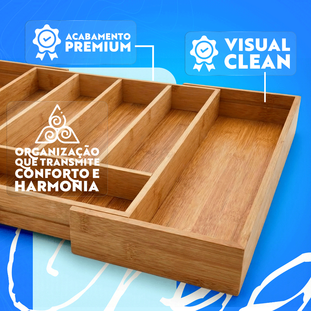 Porta Talheres Organizador Utensilios Extensível Expansivel Para Gaveta Em Bambu De Cozinha com Divisórias Ajustáveis