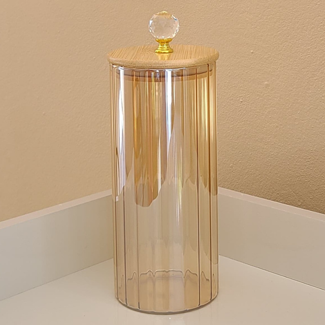 Porta Tempero CANELADO ÂMBAR CRISTAL 1050ML Porta Mantimentos cozinha Pote com Tampa Bambu