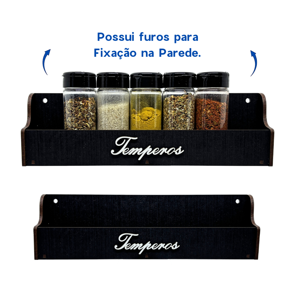 Porta Tempero Condimentos com 7 Potes e Tampa mais Etiquetas. Este lindo Porta Temperos tornará sua cozinha ainda mais organizada e linda. Pois além de deixar o processo de cozinha ainda mais rápido e prazeroso e uma linda peça de decoração para sua cozinha. Ele pode ser utilizado sobre a mesa, bancada ou fixado na parede o que facilita muito, pois você pode colocá-lo perto do fogão em um local que não te atrapalhe. Você encontrara todos os seus temperos favoritos em um só lugar de fácil acesso. ===== BENEFÍCIOS DO PRODUTO ===================================== - Organizar todos os seus temperos em um só local. - Fabricado em MDF de 4 mm cortado a laser. - Pintura Profissional de Alta Qualidade. - 7 Potes com Tampa + Etiquetas são enviados junto com o produto. ===== KIT CONTÉM================================================== 7 Potes de plástico com tampa 1 Suporte de mdf 1 Cartela de etiquetas com 20 nomes diferentes de temperos. (Obs: Não personalizamos as etiquetas) Obs: Os objetos da foto são ilustrativo não acompanham o produto. Não recomendamos lavar os potes em água muito quente, pode danificar o plástico. ===== DIMENSÕES DO PRODUTO ====================================== Altura: 8,7 cm Comprimento: 30 cm Largura: 5,1 cm Espessura das chapas de Mdf: 6 mm Altura do Pote com Tampa: 11 cm Diâmetro do Pote: 4 cm Capacidade dos Potes: 100 g ===== OBSERVAÇÕES ================================================ Produto pode sofrer pequenas variações de aparência devido aos veios da madeira e marcas naturais na madeira. A tonalidade das fotos do anúncio pode sofrer uma pequena variação dependendo do monitor ou celular que você está utilizando. Não enviamos os temperos, somente os potes. ===== NOSSA EMPRESA =============================================== A empresa Wilton Laser atua a mais de 10 anos no mercado de produção de peças em mdf cortadas a laser. Tendo como missão garantir a satisfação total de seus clientes, tanto nos produtos quanto no atendimento. Assim estabelecendo uma relação de confiança! ===================================================================== Estamos sempre à disposição para tirar qualquer duvida que você possa ter sobre nossos produtos, não hesite em nos perguntar. Responderemos o mais rápido possível.