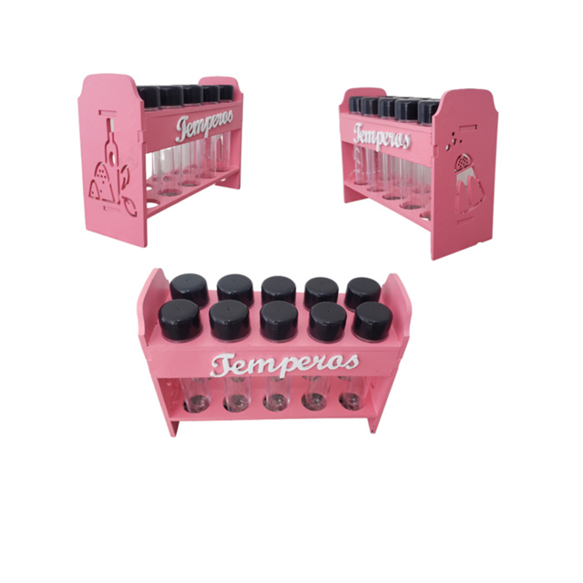 Porta tempero e condimentos bancada cozinha ROSA+10 tubetes+etiquetas