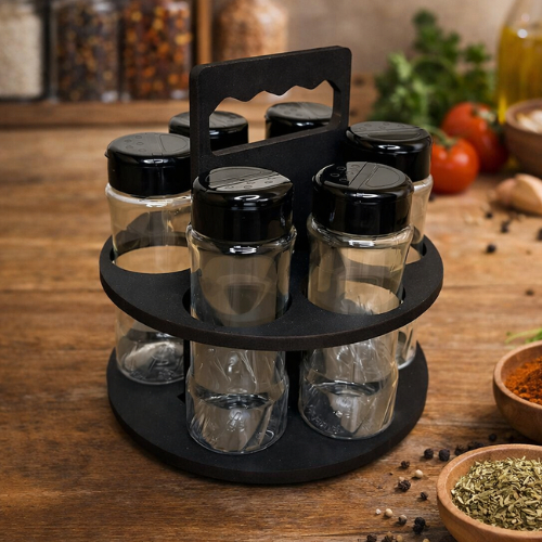 Porta Tempero e Especiarias 6 Potes130ml Tampa Dosadora Dupla MDF