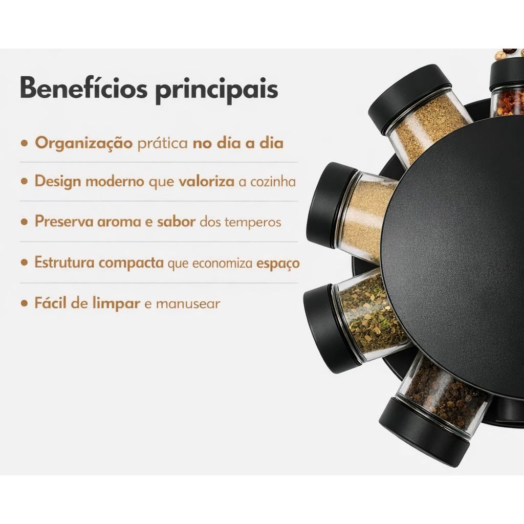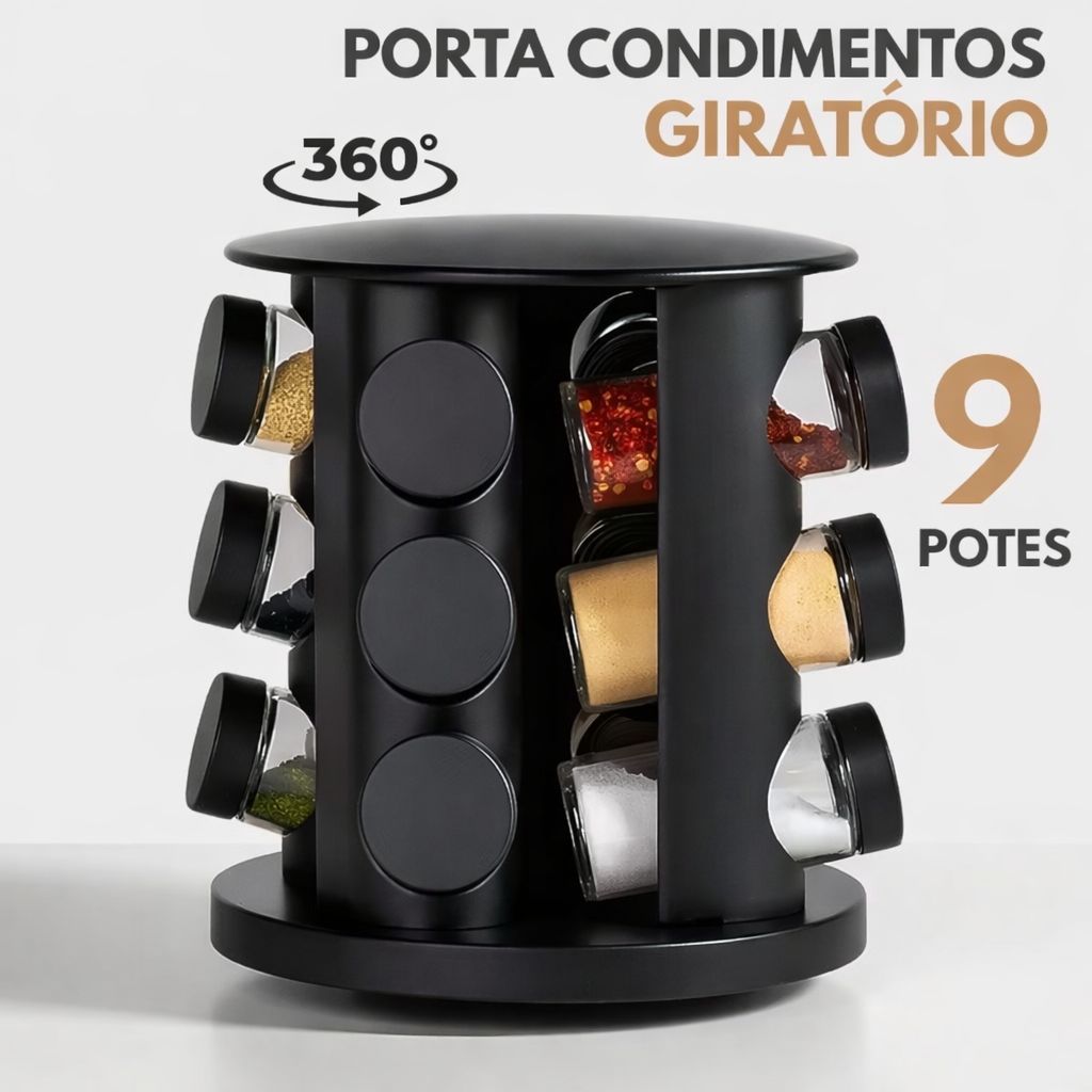 | Porta Tempero Giratório Preto Vidro Profissional 360 Graus 9 Potes ... este produto | R$ 40,99 | 41% | 5.0/5 | 18 |