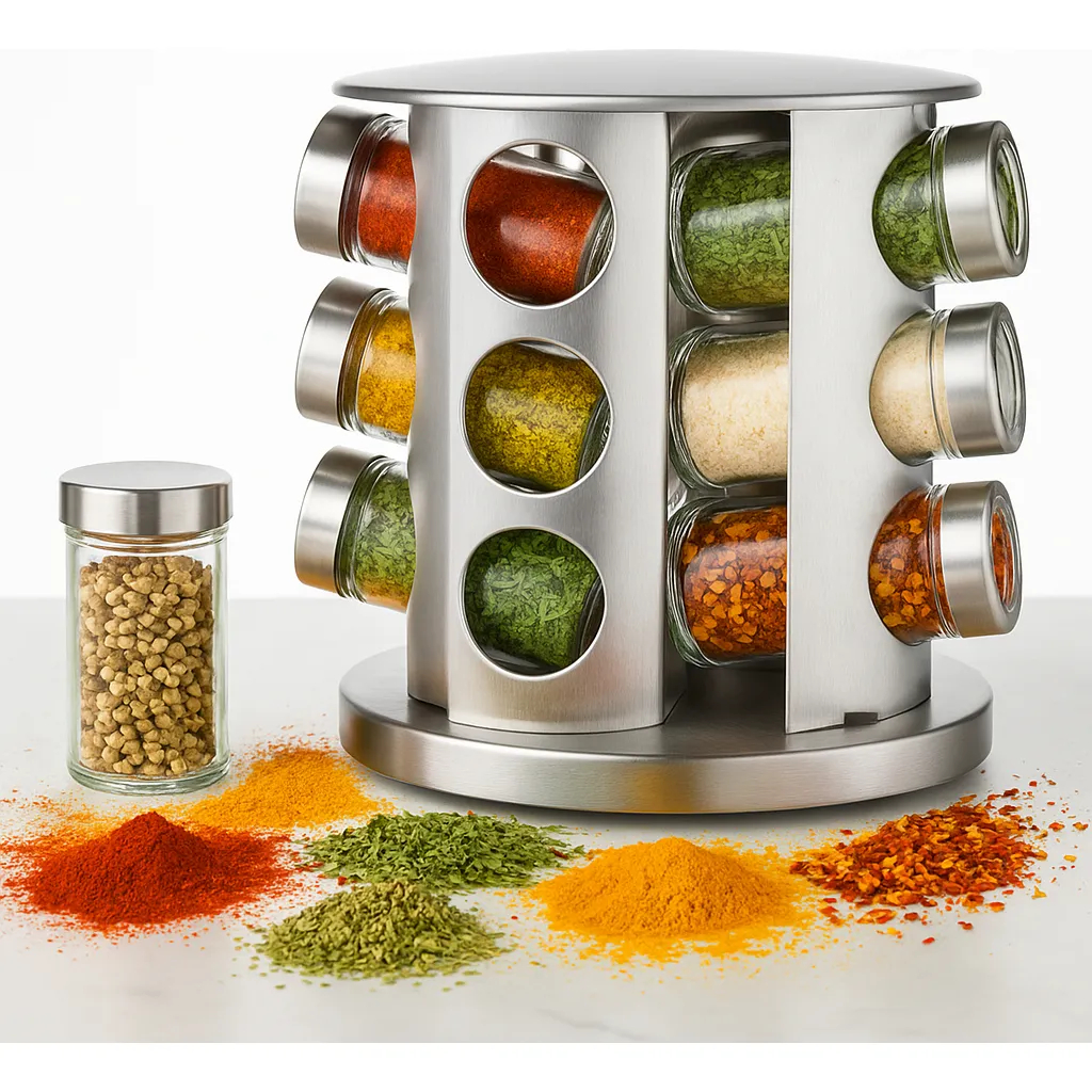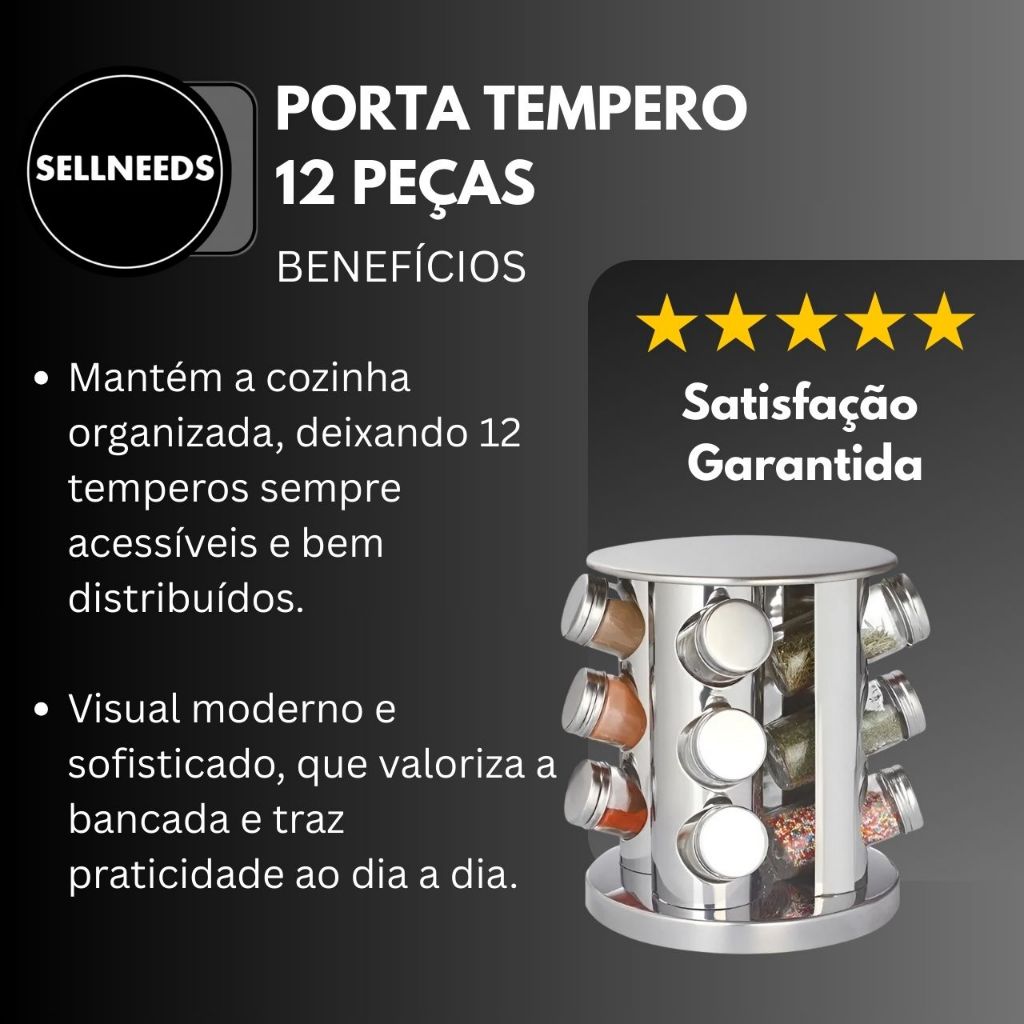 Porta Tempero Inox Giratório Vidro 12 Potes 360