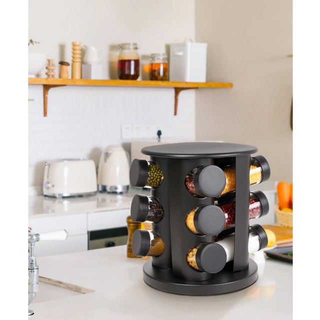 Porta Tempero Inox Giratório Vidro 12 Potes 360 Preto