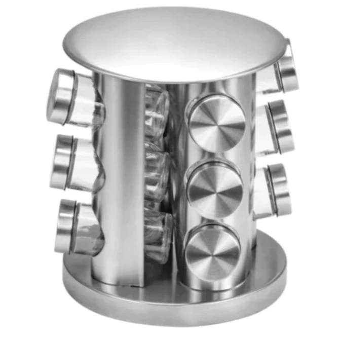 Porta Tempero Redondo Condimento Inox 12 Potes Suporte Giratório Decoração Caneta Etiqueta Promoção