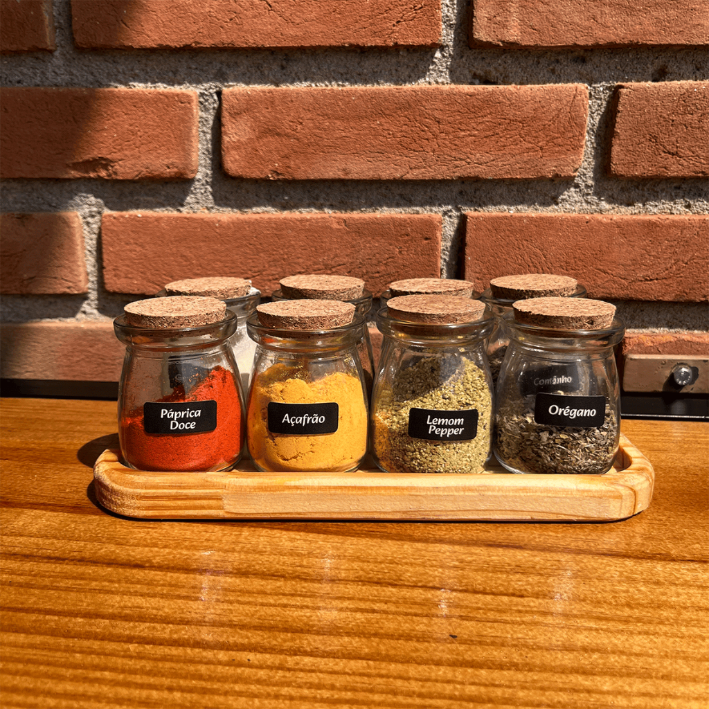 Porta Temperos com Kit 8 Potes de Vidro 110ml Herméticos Organizador de Cozinha Bancada Condimentos